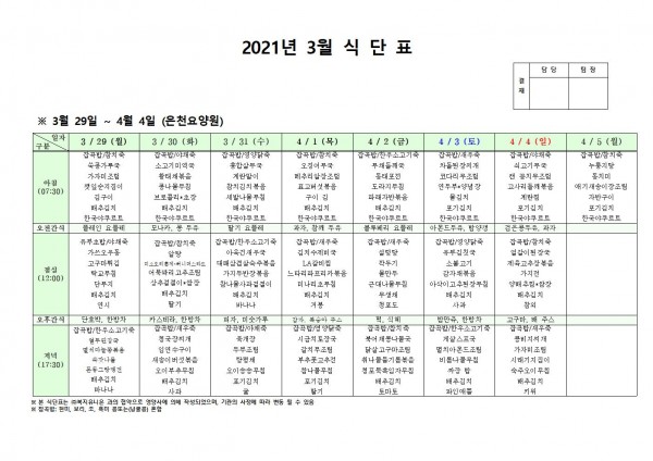 3월 다섯째주 식단표 페이지 정보 작성자 은천노인복지회 작성일21-03-25 17:09 조회141,391회 댓글0건 관련링크 이전글 다음글 목록 답변 본문 3월 다섯째주 식단표 이전글 다음글 목록 답변