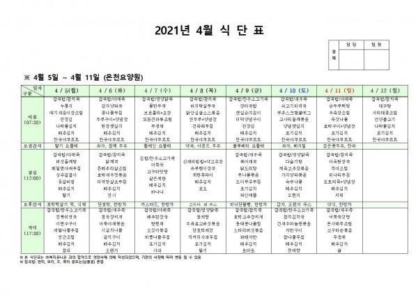 4월 첫째주 식단표 페이지 정보 작성자 은천노인복지회 작성일21-04-01 18:24 조회142,031회 댓글0건 관련링크 이전글 다음글 목록 답변 본문 4월 첫째주 식단표 이전글 다음글 목록 답변
