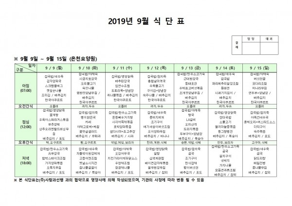 9월 둘째주 식단표 페이지 정보 작성자 은천노인복지회 작성일19-09-23 13:26 조회197,077회 댓글0건 관련링크 이전글 다음글 목록 답변 본문 . 이전글 다음글 목록 답변