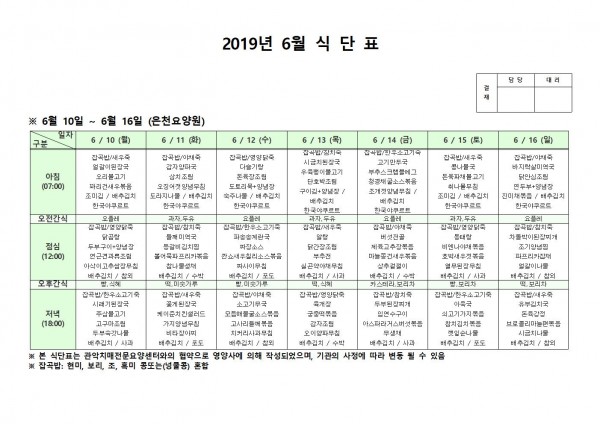 6월 둘째주 식단표 페이지 정보 작성자 은천노인복지회 작성일19-06-17 13:13 조회202,142회 댓글0건 관련링크 이전글 다음글 목록 답변 본문 6월 둘째주 식단표 이전글 다음글 목록 답변