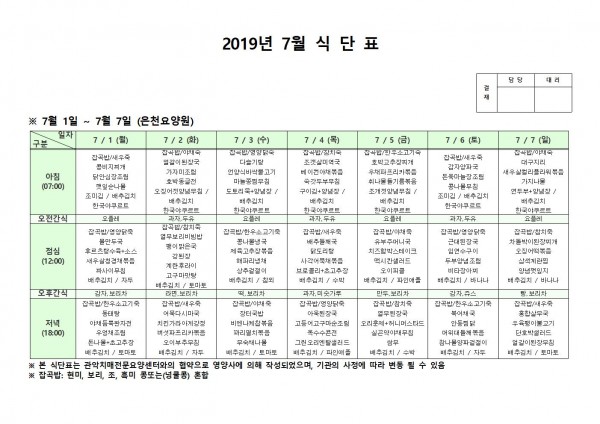 7월 첫째주 식단표 페이지 정보 작성자 은천노인복지회 작성일19-07-08 11:21 조회200,289회 댓글0건 관련링크 이전글 다음글 목록 답변 본문 7월 첫째주 식단표 이전글 다음글 목록 답변