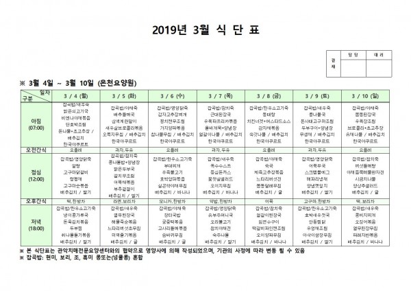 3월 첫째주 식단표 페이지 정보 작성자 은천노인복지회 작성일19-03-13 09:44 조회206,846회 댓글0건 관련링크 이전글 다음글 목록 답변 본문 3월 첫째주 식단표 이전글 다음글 목록 답변