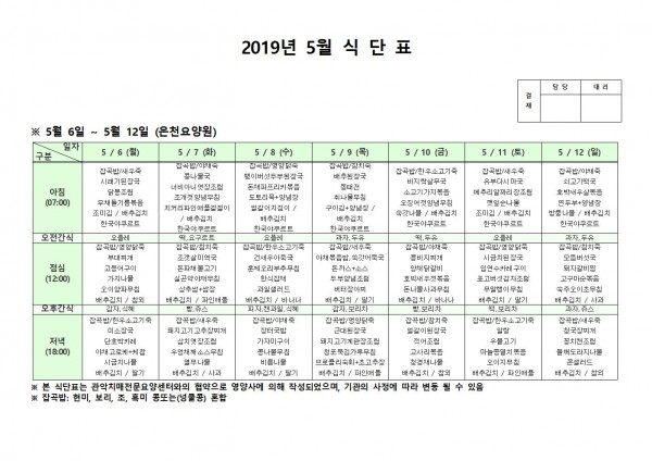 5월 첫째주 식단표 페이지 정보 작성자 은천노인복지회 작성일19-05-13 13:11 조회204,168회 댓글0건 관련링크 이전글 다음글 목록 답변 본문 5월 첫째주 식단표 이전글 다음글 목록 답변