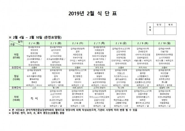 2월 첫째주 식단표 페이지 정보 작성자 은천노인복지회 작성일19-02-13 17:29 조회207,586회 댓글0건 관련링크 이전글 다음글 목록 답변 본문 2월 첫째주 식단표 이전글 다음글 목록 답변