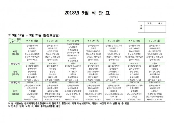 9월 셋째주 식단표 페이지 정보 작성자 은천노인복지회 작성일18-10-08 11:05 조회206,327회 댓글0건 관련링크 이전글 다음글 목록 답변 본문 9월 셋째주 식단표 이전글 다음글 목록 답변
