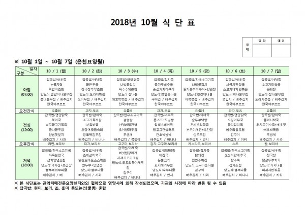 10월 첫째주 식단표 페이지 정보 작성자 은천노인복지회 작성일18-10-08 11:06 조회205,885회 댓글0건 관련링크 이전글 다음글 목록 답변 본문 10월 첫째주 식단표 이전글 다음글 목록 답변