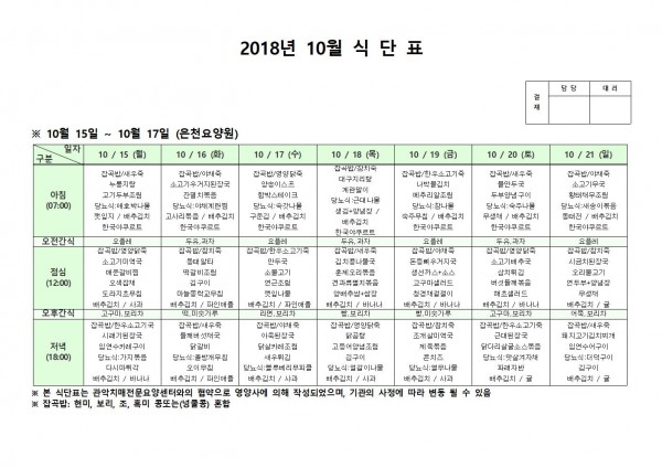 10월 셋째주 식단표 페이지 정보 작성자 은천노인복지회 작성일18-10-30 09:48 조회206,639회 댓글0건 관련링크 이전글 다음글 목록 답변 본문 10월 셋째주 식단표 이전글 다음글 목록 답변
