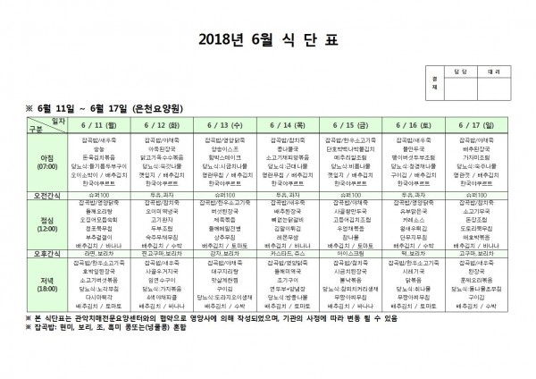 6월 셋째주 식단표 페이지 정보 작성자 은천노인복지회 작성일18-06-18 10:47 조회209,535회 댓글0건 관련링크 이전글 다음글 목록 답변 본문 6월 셋째주 식단표 이전글 다음글 목록 답변