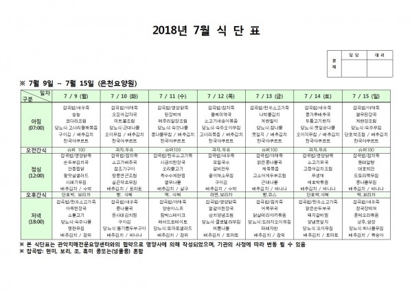 7월 둘째주 식단표 페이지 정보 작성자 은천노인복지회 작성일18-07-20 17:41 조회210,126회 댓글0건 관련링크 이전글 다음글 목록 답변 본문 7월 둘째주 식단표 입니다. 이전글 다음글 목록 답변