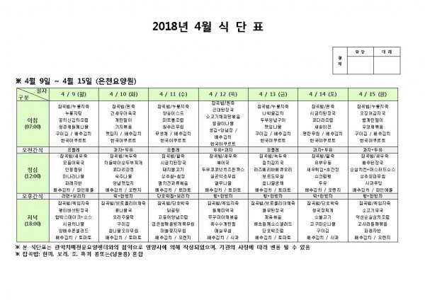 4월 둘째주 식단표 페이지 정보 작성자 은천노인복지회 작성일18-04-09 15:02 조회201,944회 댓글0건 관련링크 이전글 다음글 목록 답변 본문 4월 둘째주 식단표 이전글 다음글 목록 답변