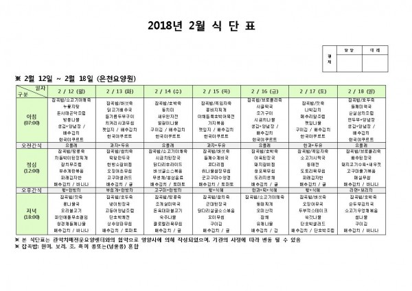 2월 둘째주 식단표 페이지 정보 작성자 은천노인복지회 작성일18-02-12 11:15 조회196,585회 댓글0건 관련링크 이전글 다음글 목록 답변 본문 2월 둘째주 식단표 이전글 다음글 목록 답변