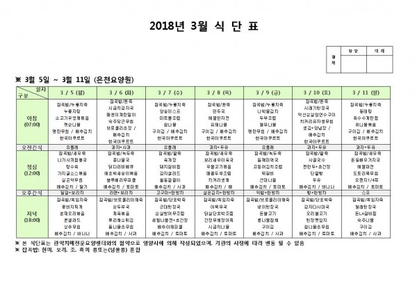 3월 둘째주 식단표 페이지 정보 작성자 은천노인복지회 작성일18-03-05 16:27 조회197,623회 댓글0건 관련링크 이전글 다음글 목록 답변 본문 3월 둘째주 식단표 이전글 다음글 목록 답변