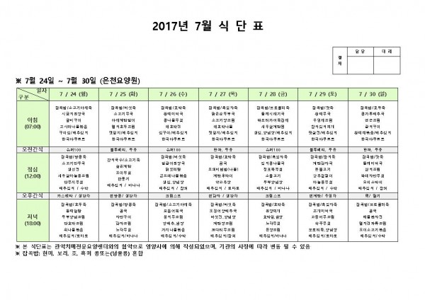 7월 넷째주 식단표 페이지 정보 작성자 은천노인복지회 작성일17-07-24 17:56 조회182,128회 댓글0건 관련링크 이전글 다음글 목록 답변 본문 7월 넷째주 식단표 이전글 다음글 목록 답변