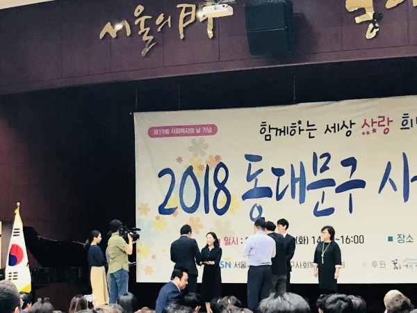 19회사회복지의 날 페이지 정보 작성자 은천노인복지회 작성일19-03-18 11:33 조회11,061회 댓글0건 관련링크 목록 답변 본문 2018년 9월 11일 동대문구청 다목적홀에서 동대문구사회복지대회를 실시하였으며,은천재가노인지원센터장이 국회위원상을 수상하였다. 목록 답변