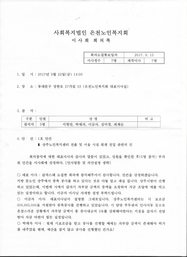 이사회의록 공개 페이지 정보 작성자 은천노인복지회 작성일17-10-16 14:27 조회37,001회 댓글0건 관련링크 목록 본문 9월 22일 상주노인복지센터 전출의 건 이사회의록을 공개합니다. 목록