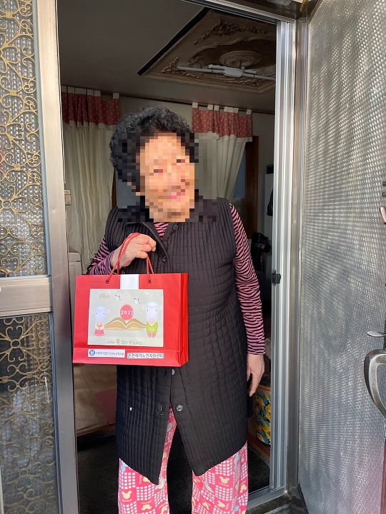 [재가노인지원센터] 설명절 선물지원서비스 페이지 정보 작성자 은천노인복지회 작성일21-02-26 09:42 조회25,344회 댓글0건 관련링크 이전글 다음글 목록 답변 본문 2021년 설 멸정을 맞이하여 어르신들을 찾아뵙고 선물을 전하면서 안부확인을 진행하였습니다. 이전글 다음글 목록 답변