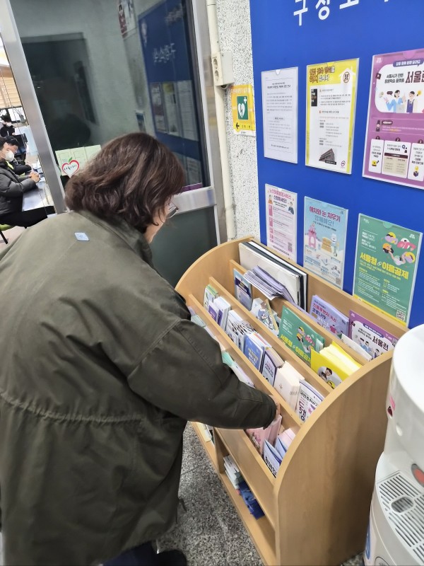 사각지대에 놓인 독거 어르신이 발생하지 않도록 관내 주민센터를 방문하여 기관 소식지를 비치하는 홍보활동을 진행하였습니다.