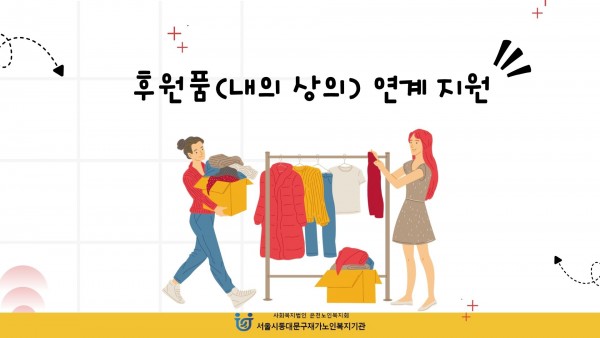 [재가노인지원서비스] 2026년 3월 서울시재가노인복지협회(내의 상의) 후원 페이지 정보 작성자 은천노인복지회 작성일26-04-06 11:34 조회33회 댓글0건 관련링크 다음글 목록 답변 본문 '서울시재가노인복지협회'로부터 내의 상의를 후원받았으며,올 겨울 이용자들이 따듯하게 보내실 수 있도록 전달드렸습니다. 다음글 목록 답변