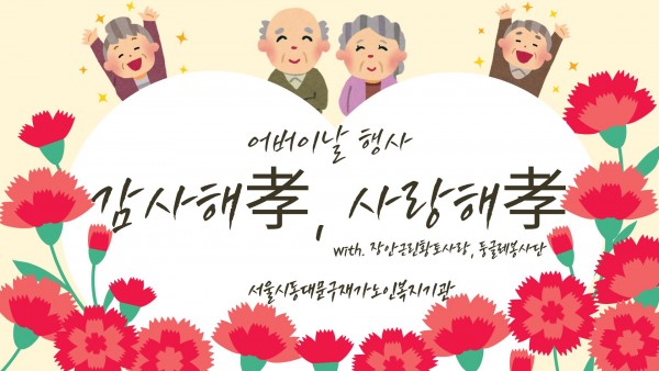 [서울시동대문구재가노인복지기관] 어버이날 기념 '감사해孝, 사랑해孝' 페이지 정보 작성자 은천노인복지회 작성일25-05-14 15:07 조회4,102회 댓글0건 관련링크 이전글 다음글 목록 답변 본문 2025년 5월 어버이날 기념으로 선물과 간식을 전달해드리며 행사를 진행하였습니다. 이전글 다음글 목록 답변