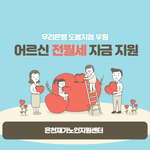 [재가노인지원서비스] 우리은행 전월세 자금 후원 페이지 정보 작성자 은천노인복지회 작성일23-07-12 16:03 조회11,376회 댓글0건 관련링크 이전글 다음글 목록 답변 본문 우리은행 도봉지점에서 저소득 어르신들을 위한 전월세 자금을 후원해 주셨습니다. 이전글 다음글 목록 답변