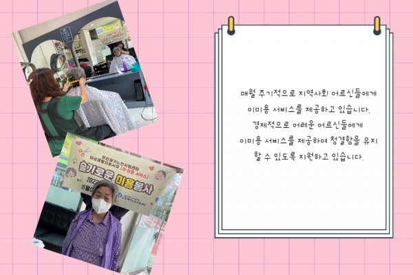 [재가노인지원서비스] 이미용 서비스 페이지 정보 작성자 은천노인복지회 작성일22-07-06 13:27 조회18,342회 댓글0건 관련링크 이전글 다음글 목록 답변 본문 6월 이미용 서비스 이전글 다음글 목록 답변