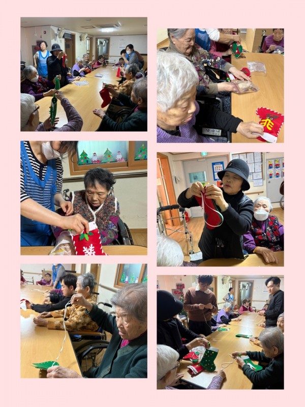 12월 19일 미술치료 프로그램 페이지 정보 작성자 은천노인복지회 작성일24-12-19 14:57 조회5,208회 댓글0건 관련링크 이전글 다음글 목록 답변 본문 바느질하여 산타양말 만들기♥ 이전글 다음글 목록 답변
